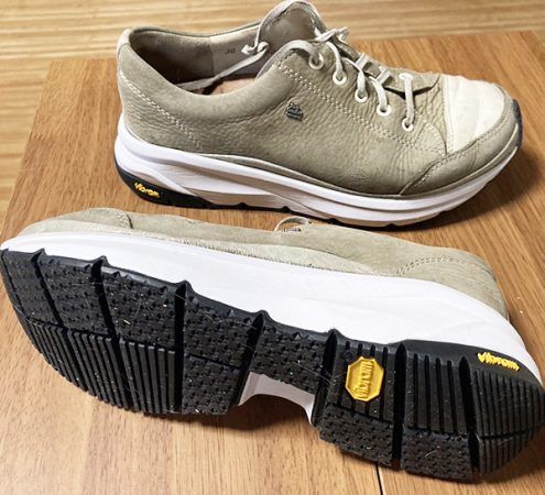 靴を預けて約1ヶ月後、靴底が生まれ変わって戻ってきました!!ゴツゴツのソールから、ウォーキングシューズのようなすっきりしたスタイルに変わり、歩き心地は格段によくなっている感じです。