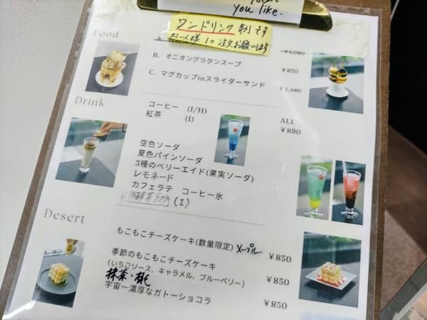 『カフェ マグノリア』では、テレビやSNSで話題の「もこもこチーズケーキ」やチーズたっぷりの「オニオングラタンスープ」が楽しめます。ドリンクも色鮮やかで、つい写真を撮りたくなるメニューばかり!記憶に残るカフェを体験したい方におすすめです。