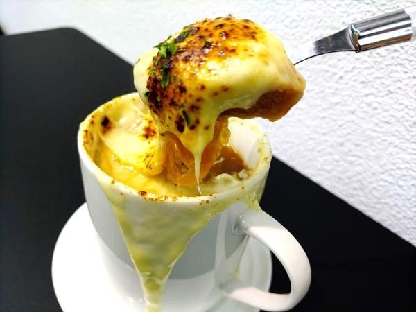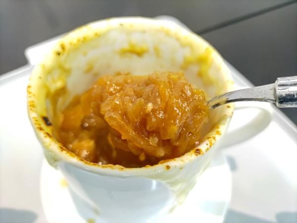 パンにスープがしっかり染み込んでおり、玉ねぎの甘みと旨味が絶妙な美味しさ。あつあつのスープは、寒い冬にぴったりです! 一口食べるごとに幸せを感じます。
