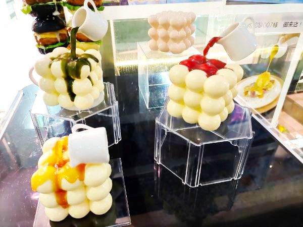 友人が注文した、このカフェの一番人気である「もこもこチーズケーキ」も少しご紹介!何だか近未来的な形で興味津々です!ソースは、桃味をチョイス。