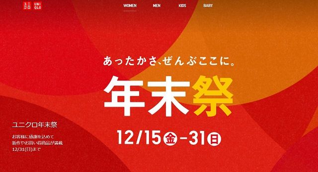ユニクロ年末祭は12月31日(土)まで! 新作やお買い得商品が満載。あったかアイテムもそろってます。