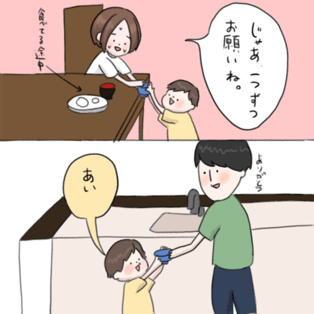 3. お手伝いブーム到来!息子が「どーじょ!」と待ち構える食事はまるで修行(汗)|ねむりひつじの子育て絵日記