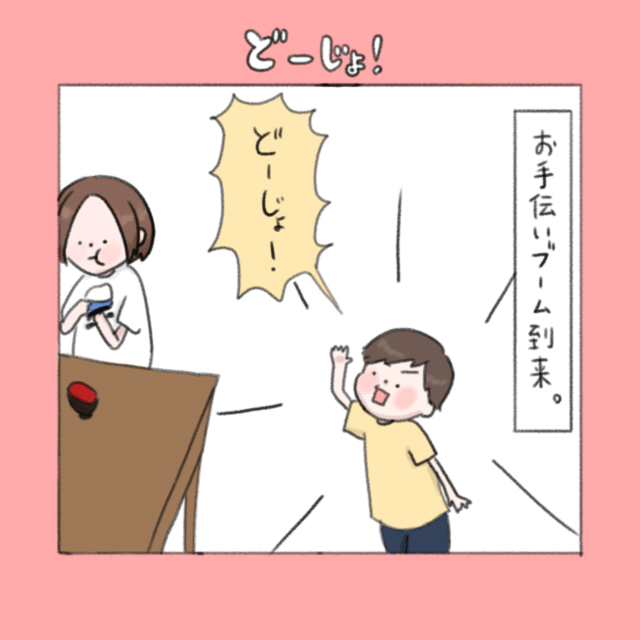 お手伝いブーム到来!息子が「どーじょ!」と待ち構える食事はまるで修行(汗)|ねむりひつじの子育て絵日記