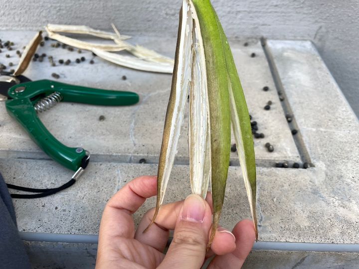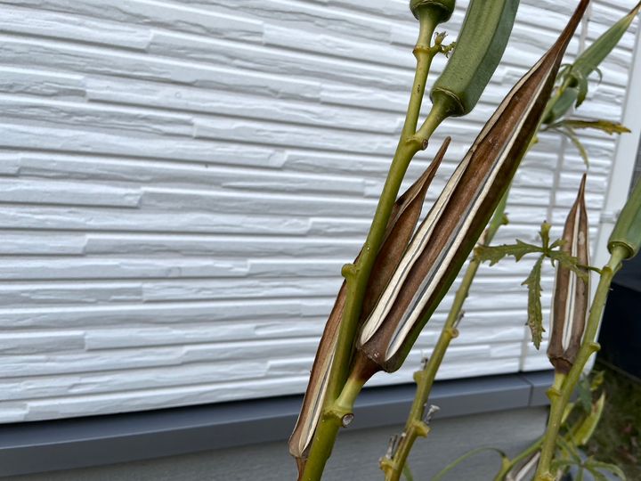 オクラが茶色く、乾燥した見た目になるまで放置しておきます。