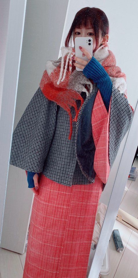 私はこの時期、カジュアル着物なら和装用ポンチョを着てから大判マフラー巻いてます♪