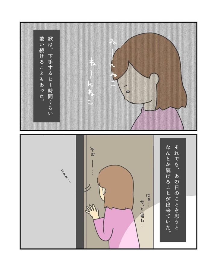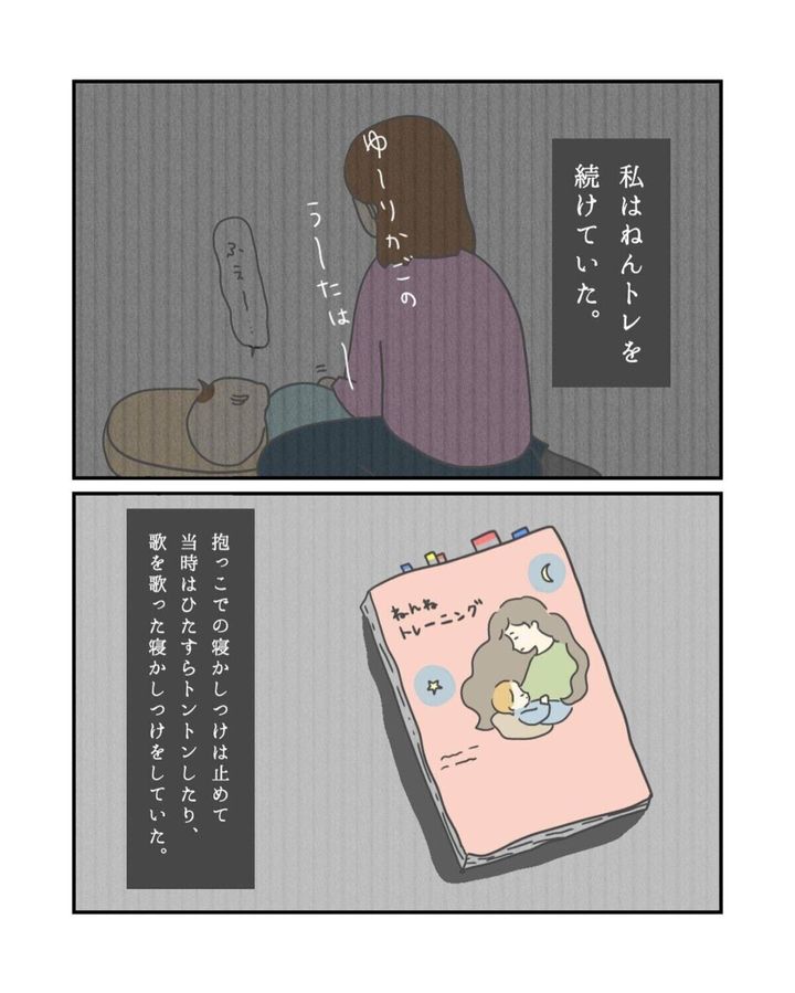 ぽぽ。さん自身も寝不足のなか、諦めずにねんトレは続けていました。時には1時間近く歌を歌い、体をトントンしてあげることも。弱音を吐くことも、夫を頼ることもできず、ただひたすら孤独に耐えながら寝かしつけをしていたぽぽ。さんの気持ちを思うと本当につらかっただろうなと思います。