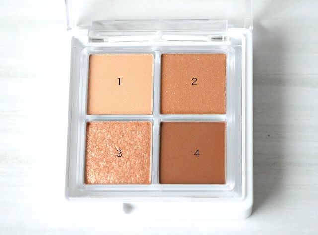 今回チョイスしたのは使い勝手のよいブラウン系のカラー。普段からクリオを愛用している筆者にとってこのパレットは捨て色なし! 翻訳アプリによると1と4はマットで2はパールマット、3はグリッターです。