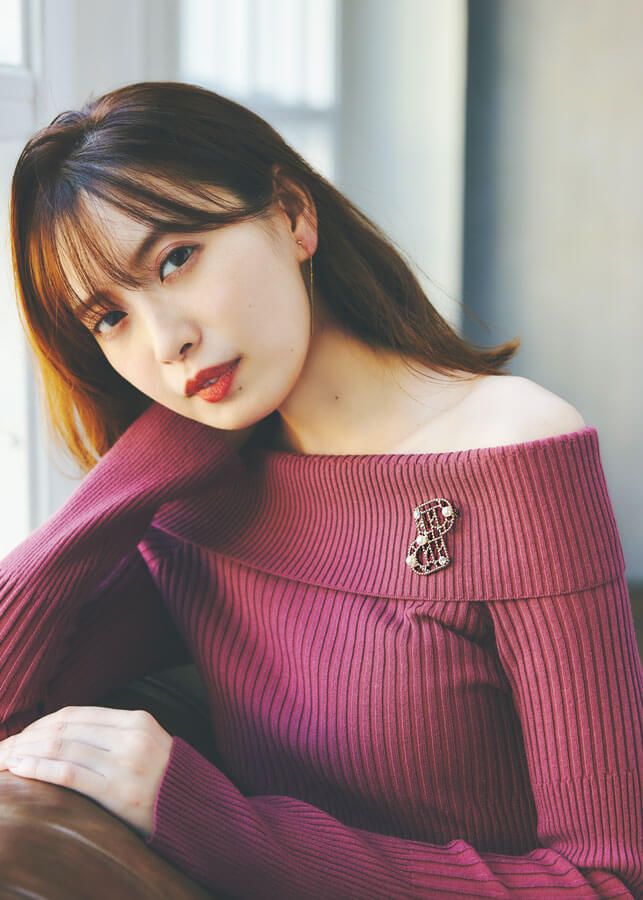 ブローチ¥2,970/PROPORTION BODY DRESSING ニット¥9,900/SNIDEL イヤリング¥35,200/アナプノエ(14 SHOWROOM)