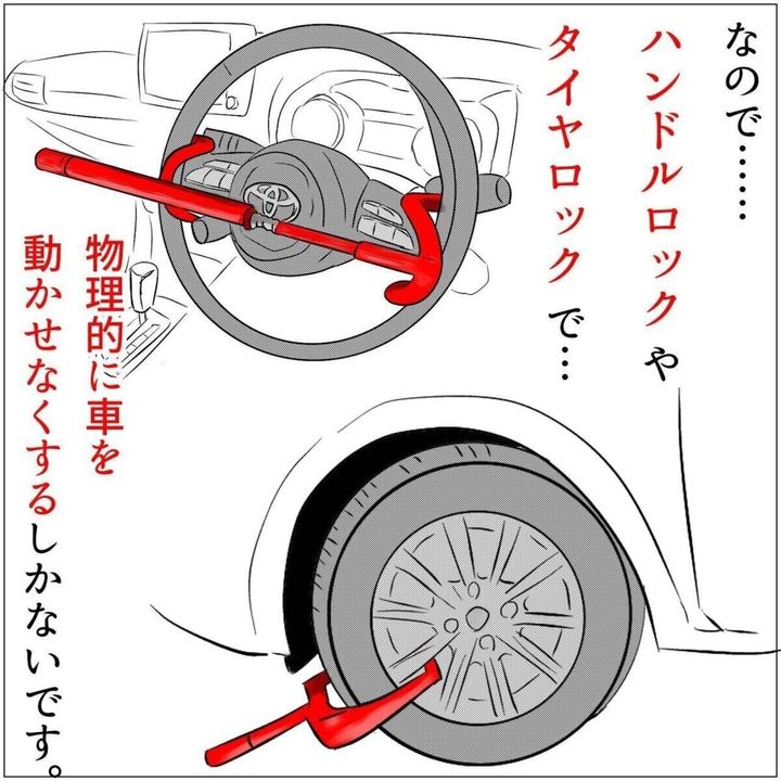 車の盗難対策を施さなければいけないなんて、悲しい現実ですが、やはり自衛は必要です。改めて、防犯対策について考えさせられる作品です。
