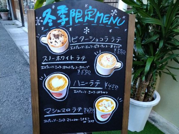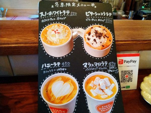 「LiSA COFFEE STAND」さん、寒い冬にうれしい、甘~いコーヒーのアレンジドリンクにくぎづけになっちゃいます。もううれしすぎる迷いですよね~。