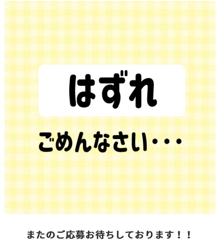 ④ 抽選クジにチャレンジ!その場で当落画面に移行します。