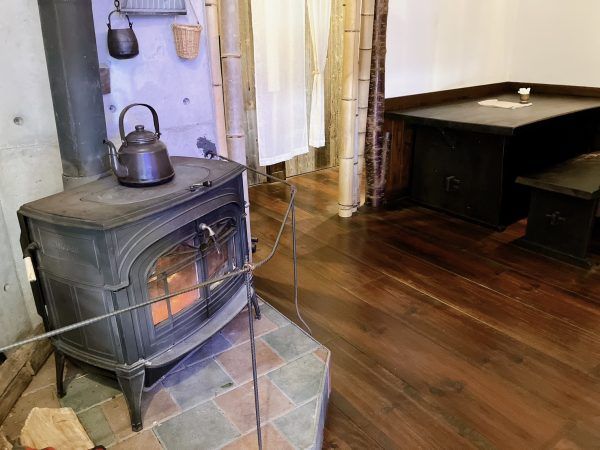 玄関で靴を脱いで、おしゃれな靴箱に靴をしまってお店に上がると、暖炉がお出迎えしてくれます。