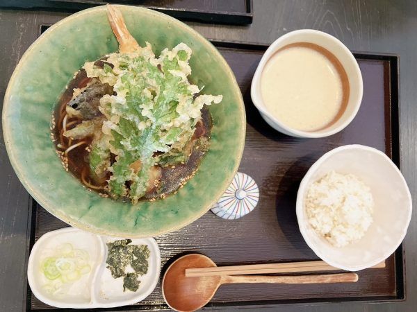 【藤枝市】自然薯の風味漂うそばと色鮮やかな季節の天ぷら「まぜもぜ空」