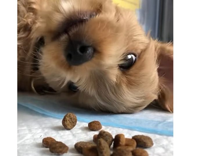 ゴロゴロ寝たままゴハンを食べれたら幸せそうだな! 実際にやってみた子犬さん。