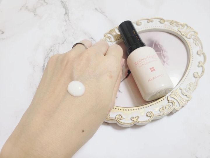 こちらは、マイルドで使いやすいレチノール誘導体(パルミチン酸レチノール)を配合した美容液。適度なコクのあるミルクタイプの美容液でお肌にスーッとなじみ、みずみずしい潤いでお肌がふっくらなめらかに整います。