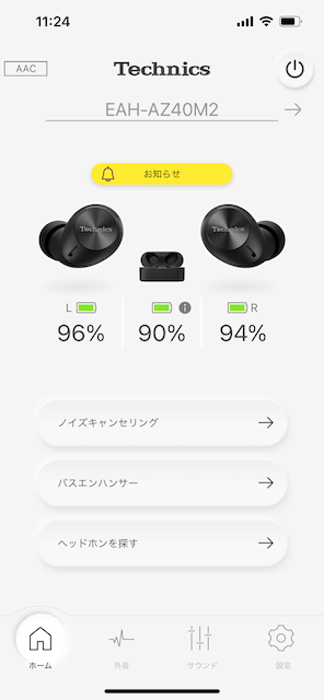 スマホなどの機器とのペアリングは専用のアプリ「Technics Audio Connect」で。画面の指示に従っていくと簡単に接続ができました。各種の設定もアプリで簡単に行えます。