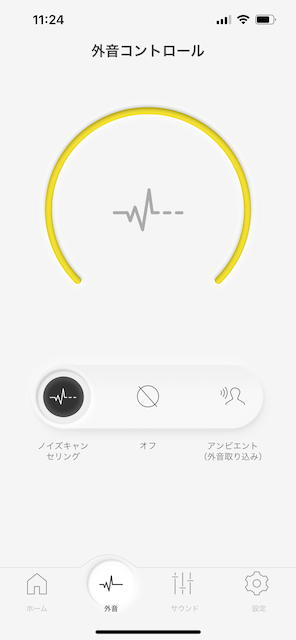 ノイズキャンセリングやアンビエント(外音取り込み)もタッチするだけで設定できます。カフェで仕事をするとき、ノイズキャンセリングを使ってみるとザワザワとした雑音がシャットアウトされ、周りの会話などを気にすることなく音楽を聴きながら作業ができました。外を歩くときはアンビエントにしておくと音楽を聴きながらも自転車や車に気がつくことができました。