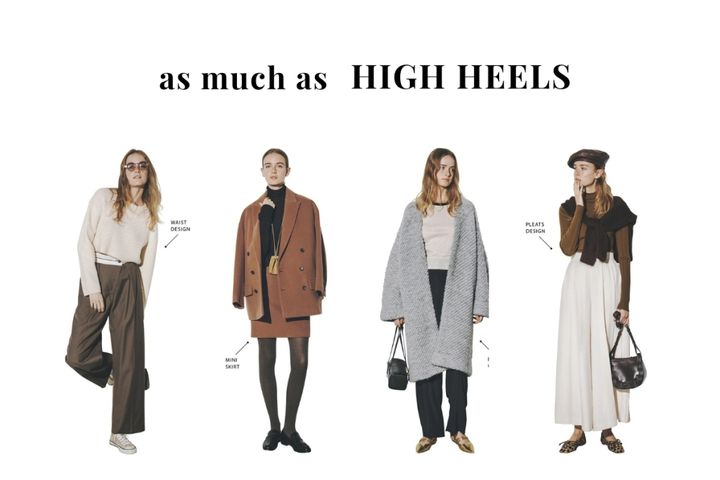 スニーカーをはじめ、フラットシューズのバリエが豊富な今シーズンは、脚長見えの常套手段だったヒールさえも小休止。服で目線を操作する丈やデザインを試すことで、まるでヒールをはいているかのようなスタイルアップを発揮。