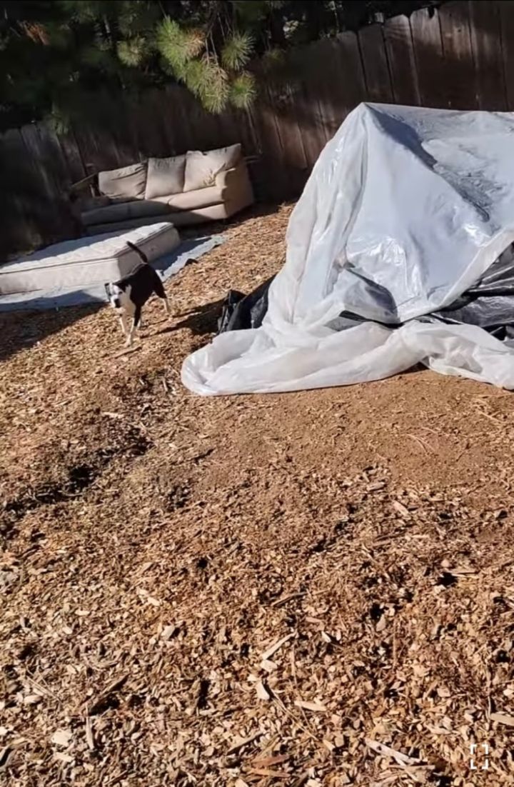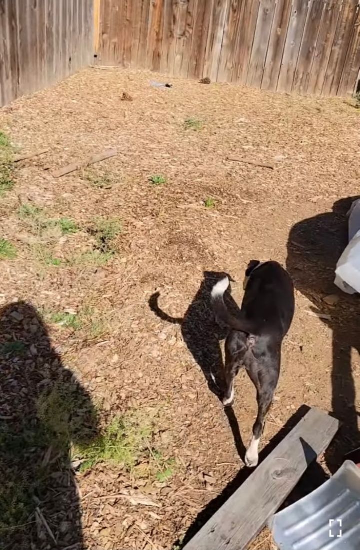 動画は、愛犬たちが裏庭で遊ばせている様子を紹介する、穏やかな朝の光景から始まります。