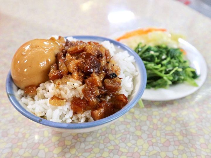 東門市場の中にある「東門城滷肉飯(ドンメンチェンルーロウファン)」は、5席ほどしかない小さなお店なのにお客さんが途切れることなく訪れる、ルーロー飯の人気店です。お肉は何時間も煮込まれつやつやと輝いていて、醤油ベースのタレがしっかり染み込んでいて甘辛い味わい。特に、こってり系のルーロー飯が好きな人におすすめです。