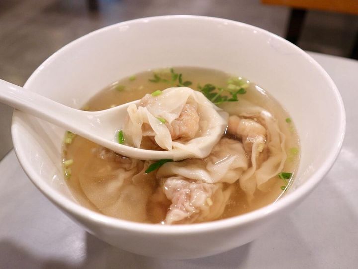 地元民でにぎわうワンタンのお店「奇福扁食(チーフービエンシー)」。ワンタンはスープだけでなく、麺入りもあります。ワンタンの種類は鮮肉(豚肉)、鮮蝦(海老)、干貝(ホタテ)、金魚(金魚の形の海老ワンタン)の4種類。おすすめは海老ワンタンで、海老のプリっとした食感と旨味、そして甘い豚肉餡のハーモニーが口いっぱいに広がります。