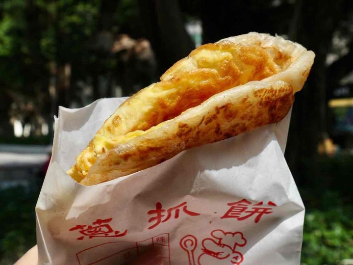 小さな屋台のようでありながらも地元民や観光客でいつも行列ができているのが、ネギ餅の人気店「天津蔥抓餅(ティエンジンツォンジュアビン)」。目の前で次々と焼かれていくネギ餅を、お好みのトッピングで注文しましょう。こんがりときれいに焼き色がついたネギ餅はふわふわもちもちで、食べ歩きにぴったりです。