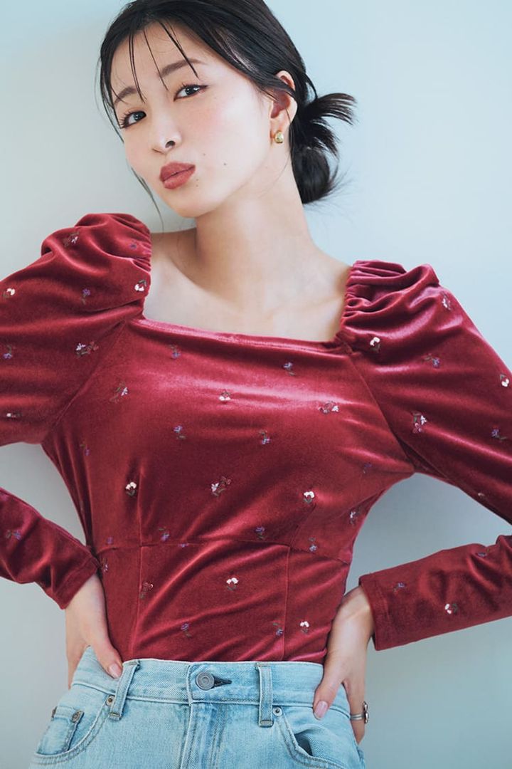 3. 【岡崎紗絵】冬こそ華やかに着飾りたい♡ 主役級な〈赤トップス〉特集