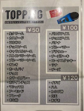 トッピングもいっぱいあります。好きなカスタマイズで楽しめそう! しかもGoogleに口コミしたらトッピングが1つ無料になるキャンペーンもやっていました!