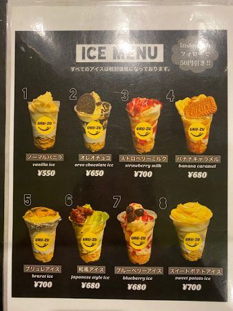 URU-ZU crepe(ウルーズクレープ) 住所:大阪市北区長柄中2丁目6−26 電話番号:080-7183-0029 営業時間:平日 16:00〜24:00 土・日曜 15:00~23:00 定休日:無休
