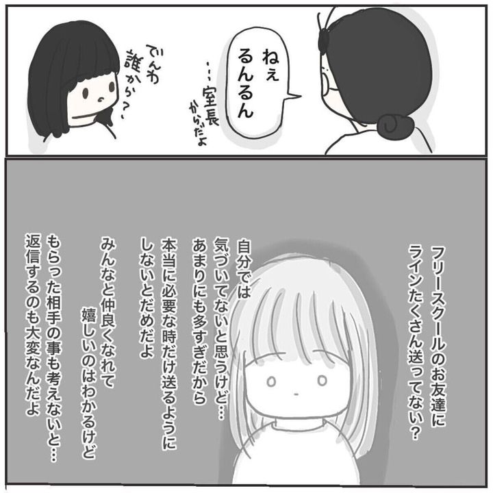 LINEを使って子ども同士楽しくコミュニケーションしていると思っていたある日、フリースクールの先生からの連絡で、るんるんちゃんが必要以上にLINEにメッセージを送っていたと知ったかあさん。LINEでのコミュニケーションは対面とは違うため、相手からの返信や反応がなくても次々にメッセージを送れてしまう怖さがありますよね。