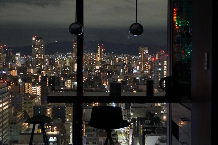 ずっとテンション上がりっぱなしだったのですが、特に楽しかったのが夜の時間。館内の〈鉄板焼 MYDO〉で豪勢に金粉のお好み焼きをいただいたり、そのまま、ムーディーなバーラウンジに行ったり。ほろ酔いでお部屋に戻ったら、夜景を眺めて「こんな都会でサバイブしている私、お疲れ!」なんて思ってみたりして。