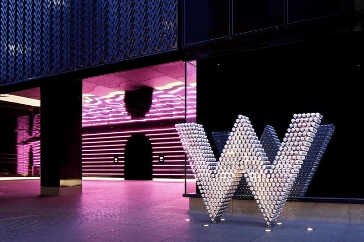 続いては、がらっとシティーラグジュアリーな雰囲気に変わって、2021年に大阪に開業した〈W 大阪〉。あのマリオット・インターナショナルが展開するホテルブランド「W」ブランドで、国内唯一のWホテルとなっています。