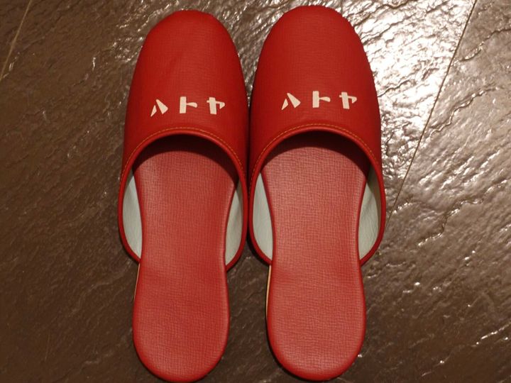 伊東駅で出迎えてくれるシャトルバスから、もう可愛い!照明や赤いじゅうたんに螺旋階段、近未来×レトロなカプセルっぽいエレベーターなどなど、昭和レトロな世界にときめきが止まりません。ひとりゆえに、スリッパも浴衣も、ディテールも、くまなく愛でられるのがいいんですよね〜。