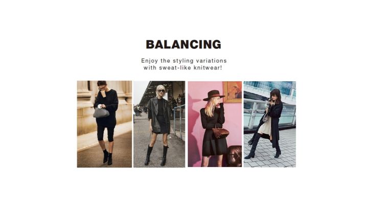 肌をまるでアクセントカラーのように「少し」見せるくらいのバランス。モノトーンでまとめるのを基本にしつつ、ミニに柄やキレイ色をとり入れたり、間にカラータイツなどを効かせるなどのアレンジもあり。