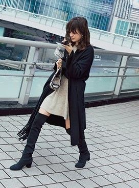 長いアウター・ブーツで「ミニをはさむ」