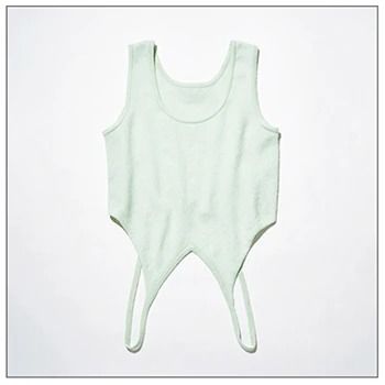 ミントタンクトップ 29,700円/ゲミニー(ウィム ガゼット ルミネ新宿店) リース中に見つけてトリコになった斬新なニット。Vネックのキャミにも変化する優れもの。タンクもキャミも用途が限られがちなので、この発想にはあっぱれ。(樋口さん)