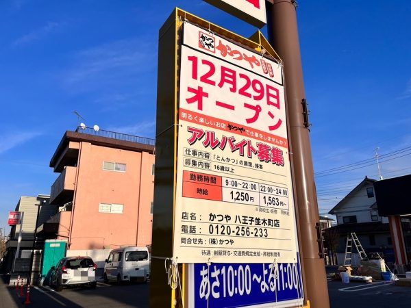 【開店】2023年12月29日かつや八王子並木町店新規オープン!