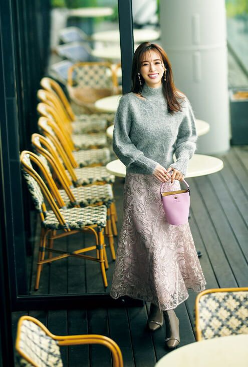 年末のデートは旬な愛されカラー「グレー×ピンク」で女っぽく<12/28のコーデ>
