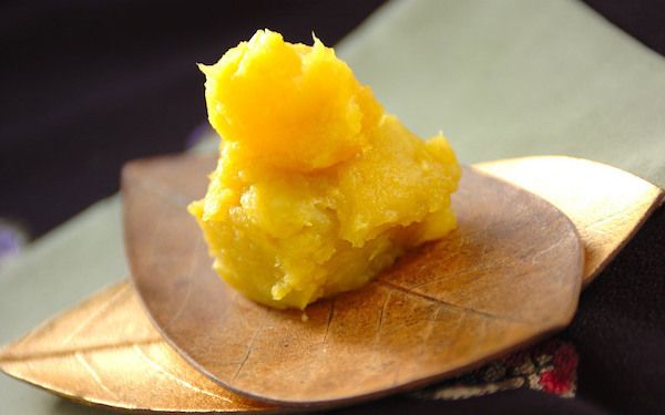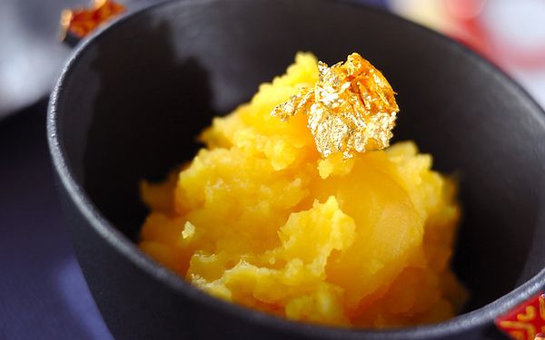 ツヤツヤに輝く栗きんとんは、栗の甘露煮とサツマイモを使って簡単に作れます。くちなしの実を入れるのがポイントです。やさしい甘さと、ちょど良い固さで子どもから大人まで美味しく食べられますよ。重箱に入れても映えます。