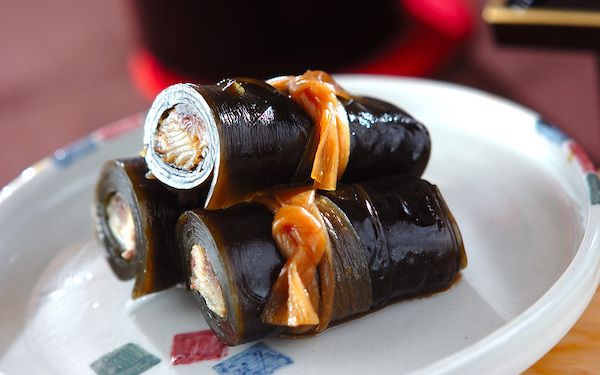 ぷっくりツヤツヤな黒豆は、おせちに欠かせません。こちらのレシピでは、白い板コンニャクもプラスします。黒豆をさっぱり味わいたい場合は、黒豆にショウガの絞り汁を少しかけるのがおすすめです。チョロギ、金箔、松葉などを飾れば、おもてなしにもぴったりな一品に。