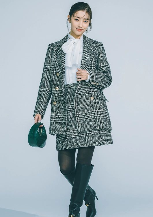 正統派ツイードをチャーミングに、ハイウエストでスタイルよく