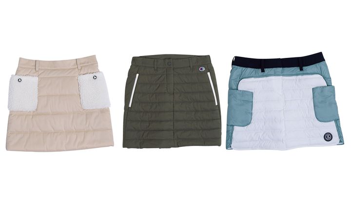スカート〈ベージュ〉¥36,300(アルチビオ/ビキジャパン) 〈カーキ〉¥12,980(チャンピオン/ヘインズブランズ ジャパン カスタマーセンター) 〈ミントグリーン〉¥20,900(アンパスィ/ブラックアンドホワイトスポーツウェア)