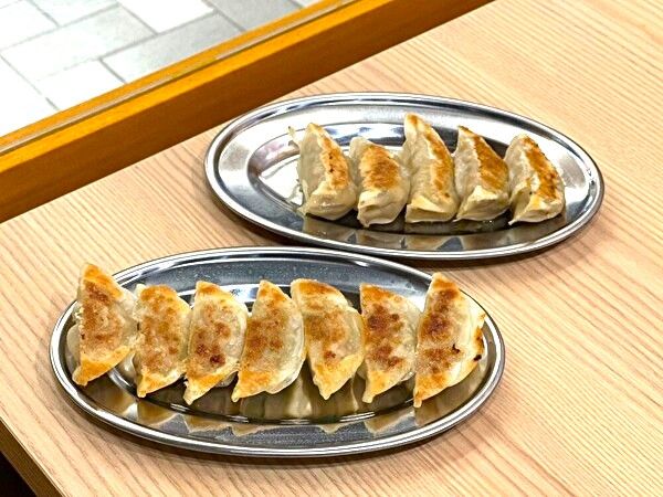 まず、2大名物の一つ、餃子です。厚さ0.6ミリの薄皮で手包みした一口サイズの「焼き餃子」の皮はパリッと、中身はジューシーで、肉肉しくて、食べ応えがあります。