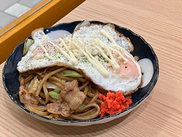 コシがある太麺にソースが絡み、麺好きにとってはたまらない一品です。特筆すべきは、上の目玉焼きが5つまで、価格そのままで注文できること。非常にお得!!!半熟に上手く焼かれ、とろ~り、太麺に絡み、味変でマイルドになった部分がある焼きそばも楽しめます。