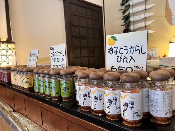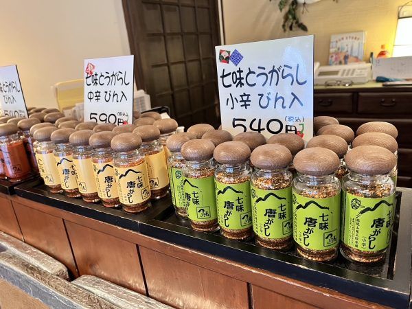 お店の方にお聞きしてみると、この日は一味とうがらし、季節限定の柚子とうがらし、そして七味とうがらしは「小辛」と「中辛」の全部で4種類があるとのことでした☆