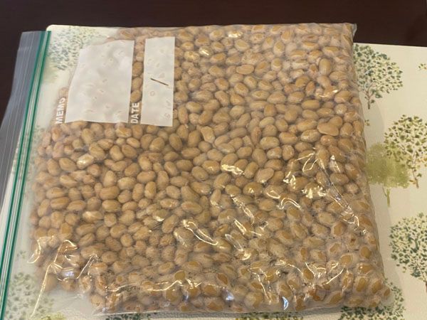 すでに蒸された大豆がジップ袋に入って提供されます。大豆たちを手でつぶしていきます。 これが黙々とした手仕事で、じんわり温かくて集中できるんです。