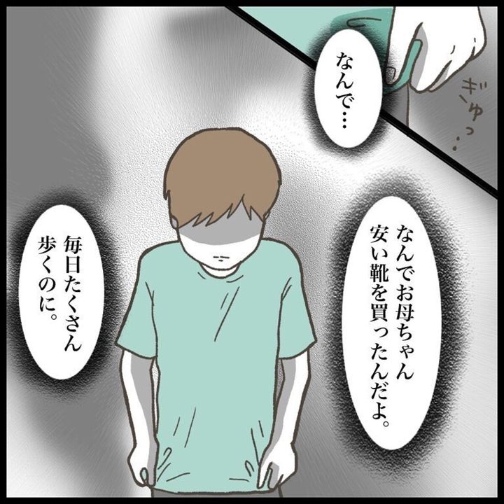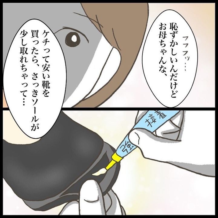 イチくんのお母さんは、節約のために靴底がはがれたヒールも修理して使っています。母のそんな姿を目の当たりにした彼は、教科書をなくしたと正直に伝えられませんでした。