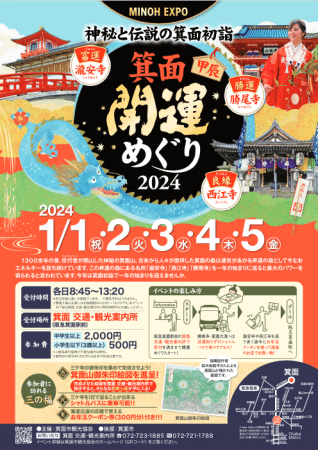 箕面市観光協会では、令和6年1月1日(祝・月)~5日(金)に、恒例となった箕面山の「瀧安寺」「西江寺」「勝尾寺」を一挙に巡る「箕面開運めぐり2024」を開催します。