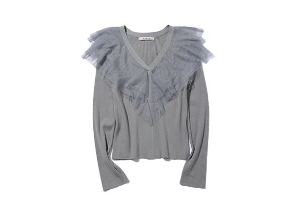 繊細なチュールレースの襟をドッキング。ニット¥17,600/Stola.