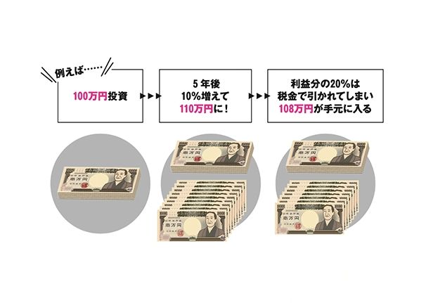 普通の投資では、利益が出たらその額に対して約20%(正しくは20.315%)の税金がかかります。それがNISA制度を使えば非課税になり、利益分がそのまま受け取れるのです。利益額が大きければ20%だと相当の金額になるため、かなりオトクだと言えます。
